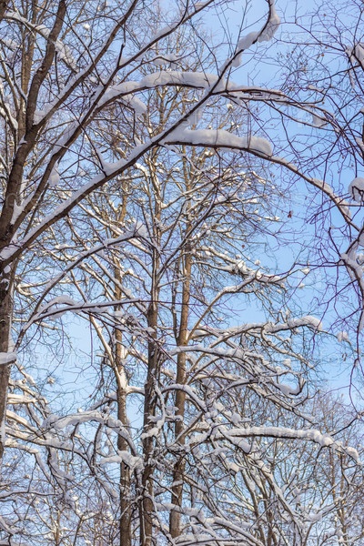 Зима. Лесные деревья, покрытые свежим пушистым снегом