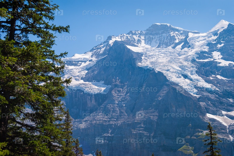 Красивый летний горный пейзаж с видом на пик Монч. Бернский Оберланд, Швейцария