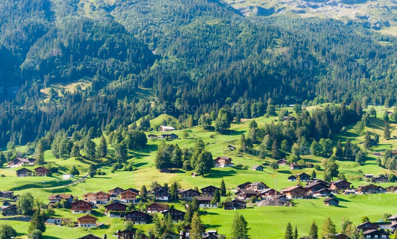 Пейзаж с горной деревней летом, Гриндельвальд, Швейцария