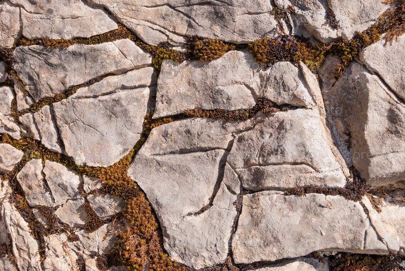 Гладкий природный камень с неповторимыми светлыми прожилками, трещинками, поросшими мхом и лишайником