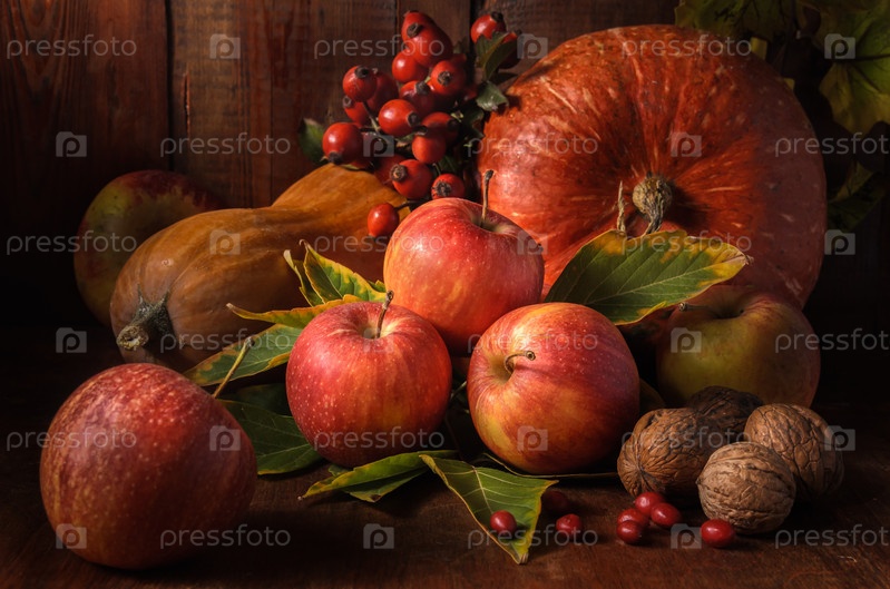 Яблоки и другие фрукты на темном деревянном фоне в деревенском стиле