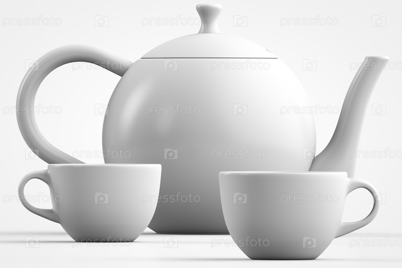 Чайный набор. Чайник и две кружки. Тематика горячих напитков