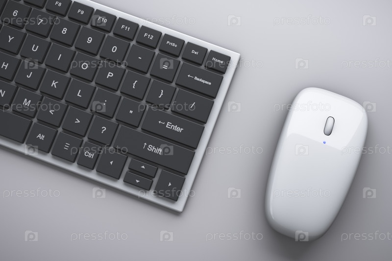 Компьютерная клавиатура и мышь на столе. Офисные темы