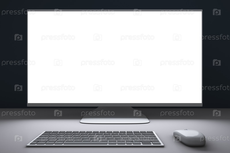 Настольный компьютер. Беспроводная клавиатура, мышь и монитор. Офисная тематика