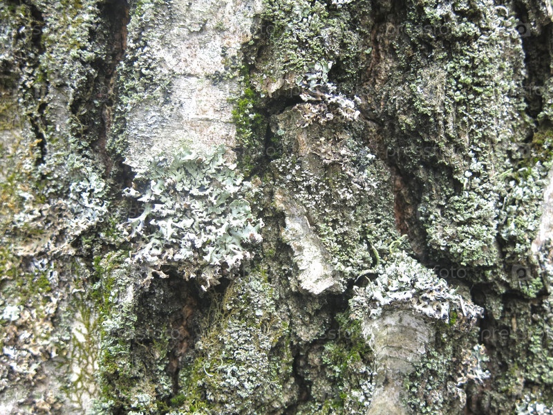Текстура березовая кора крупным планом с зеленым мхом