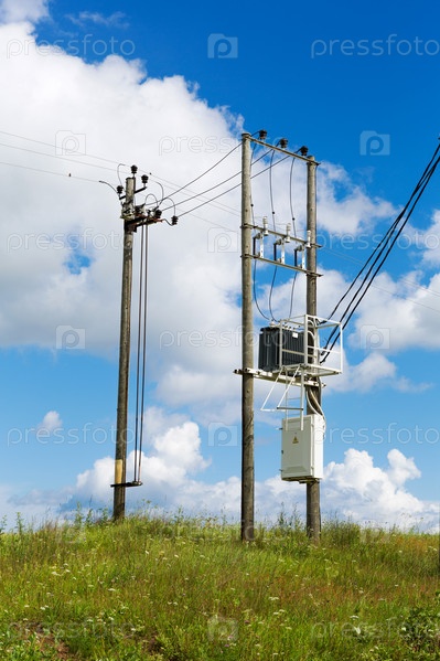 Трансформатор с электрическими столбами в поле