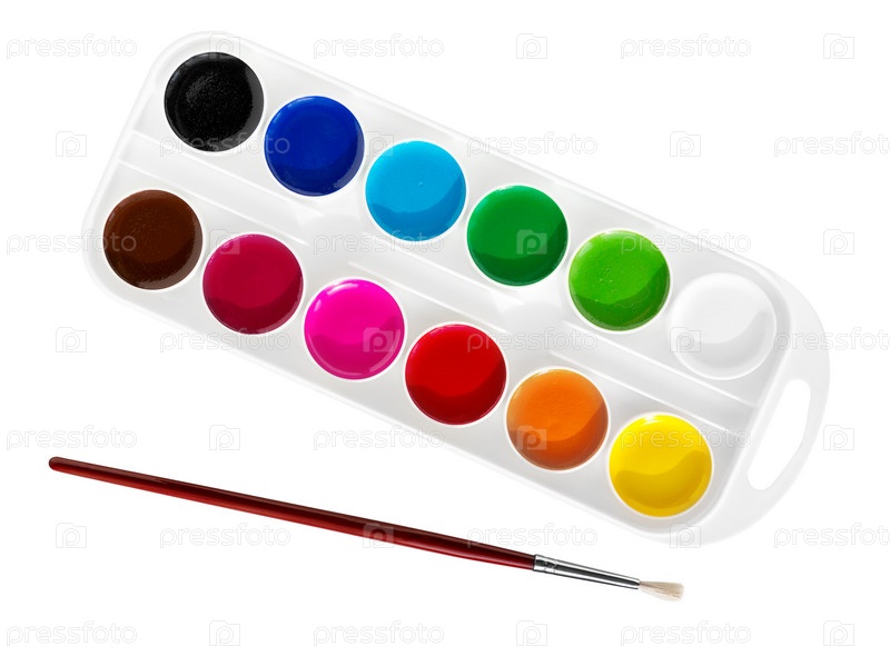 Набор акварельных красок, кисти для рисования