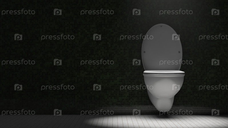 Унитаз в уборной. Драматическое освещение. Копировать пространство
