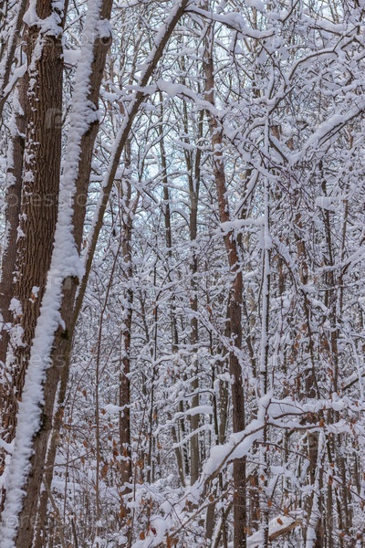 Зимний пейзаж, фон заснеженных деревьев в лесу
