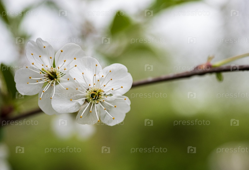 Цветущая ветка вишневой весны в саду