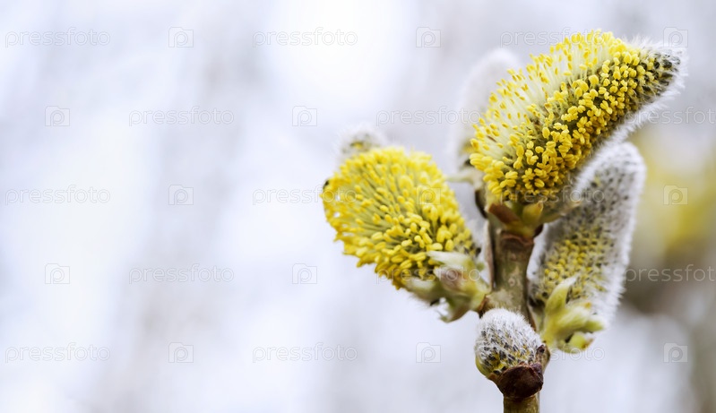Верба пушистая. Деревья цветут весной. Бутоны на дереве