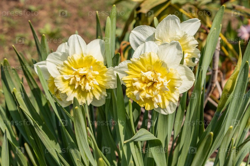 Нарцисс цветок весенний солнечный день. Цветы и зеленые листья в качестве фона. Идеальное изображение для весеннего фона, цветочного пейзажа. нарцисс фон