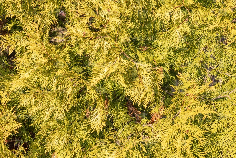 Ограждение из туи, крупный план Куст Thuja occidentalis вечнозеленое сосновое дерево семейства кипарисных Cupressaceae