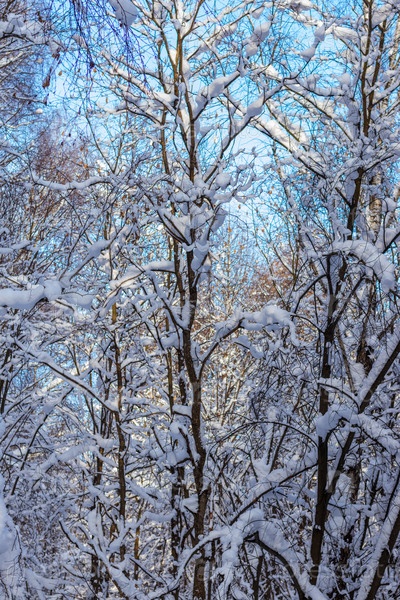 Зимний пейзаж, фон заснеженных деревьев в лесу