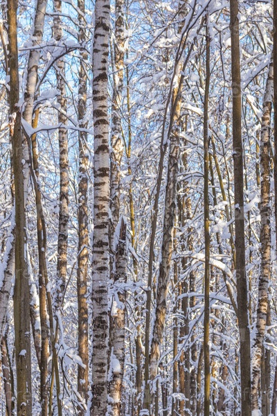 Зимний пейзаж, фон заснеженных деревьев в лесу