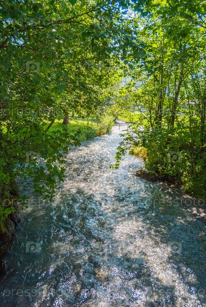 Живописный ручей среди деревьев в солнечный день
