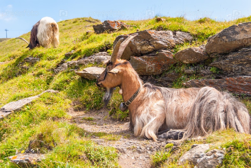 Стадо коз на крутом скалистом склоне. Гриндельвальд, Швейцария