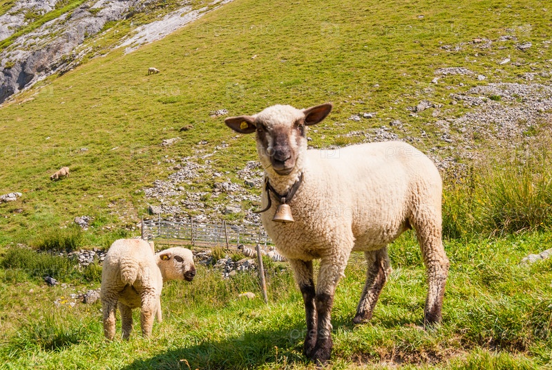 Овцы пасутся на высоком пастбище в швейцарских Альпах