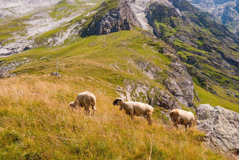 Овцы пасутся на высоком пастбище в швейцарских Альпах