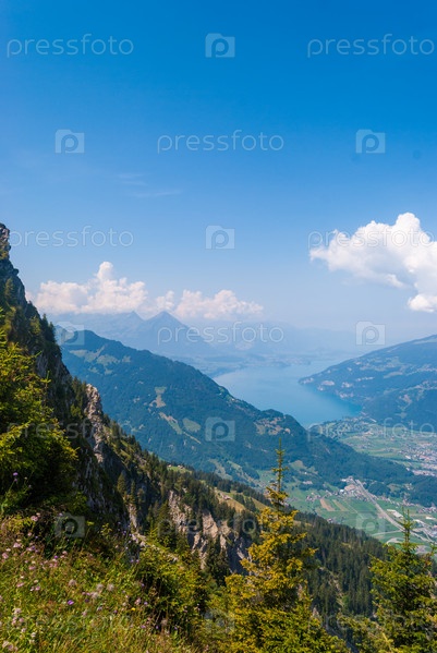 Красивая долина Интерлакен и озеро Тунерзее. Альпы Швейцарии