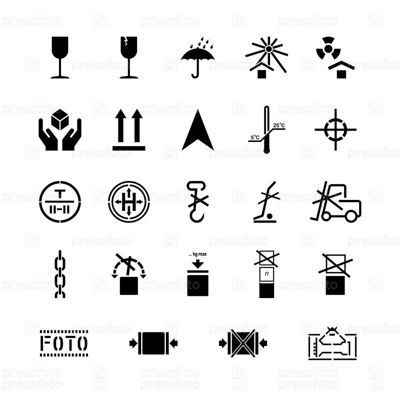 Набор символов маркировки погрузочно-разгрузочных работ, знаки на упаковке