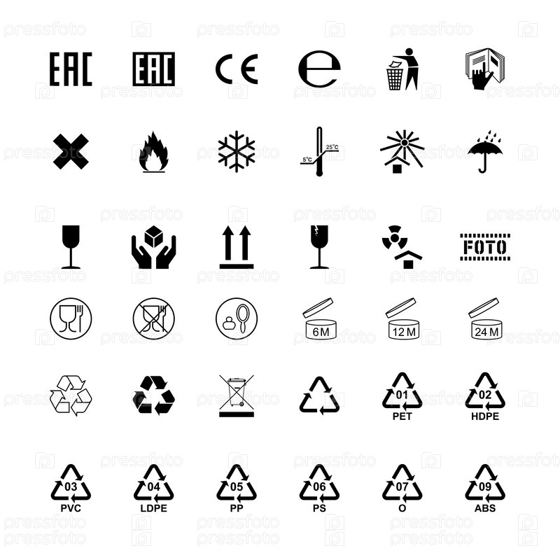 Набор изолированных символов упаковочной этикетки