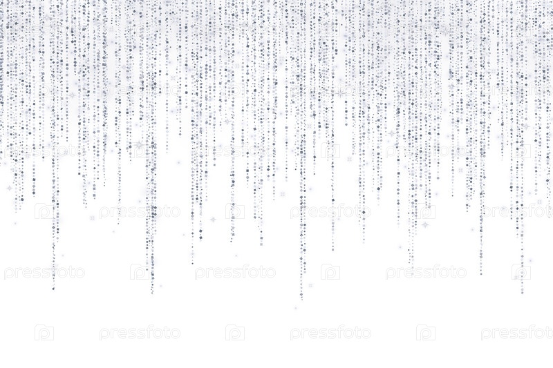 Серебряный блеск длинная гирлянда висит украшение на белом фоне
