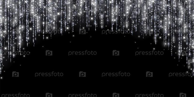 Серебряная праздничная гирлянда с блестками дуги на черном фоне