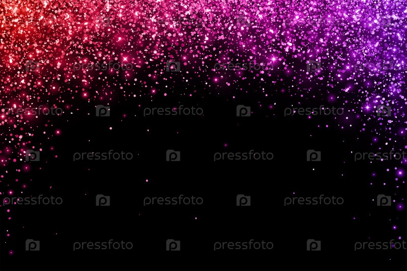 Красно-фиолетовые праздничные падающие частицы со светящимися огнями на черном фоне