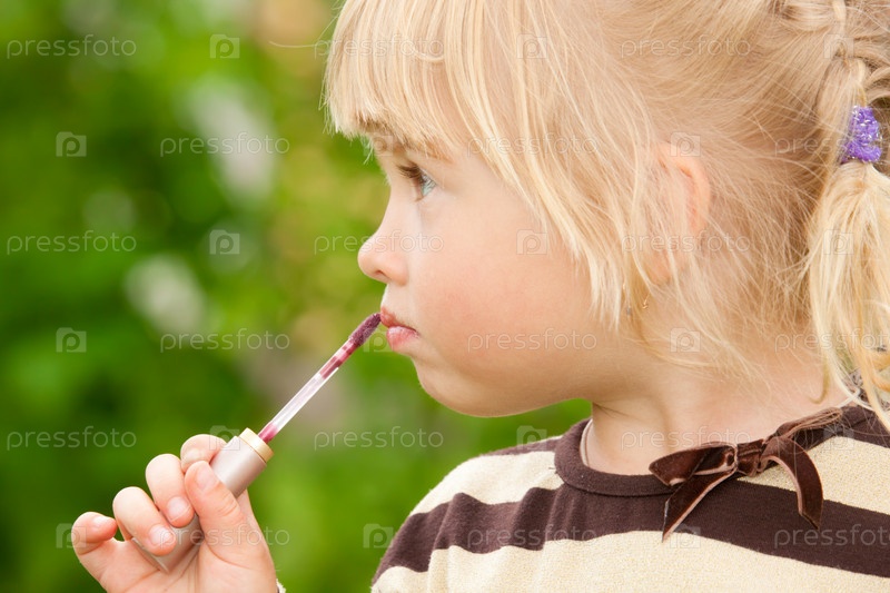 Милая девочка красит губки