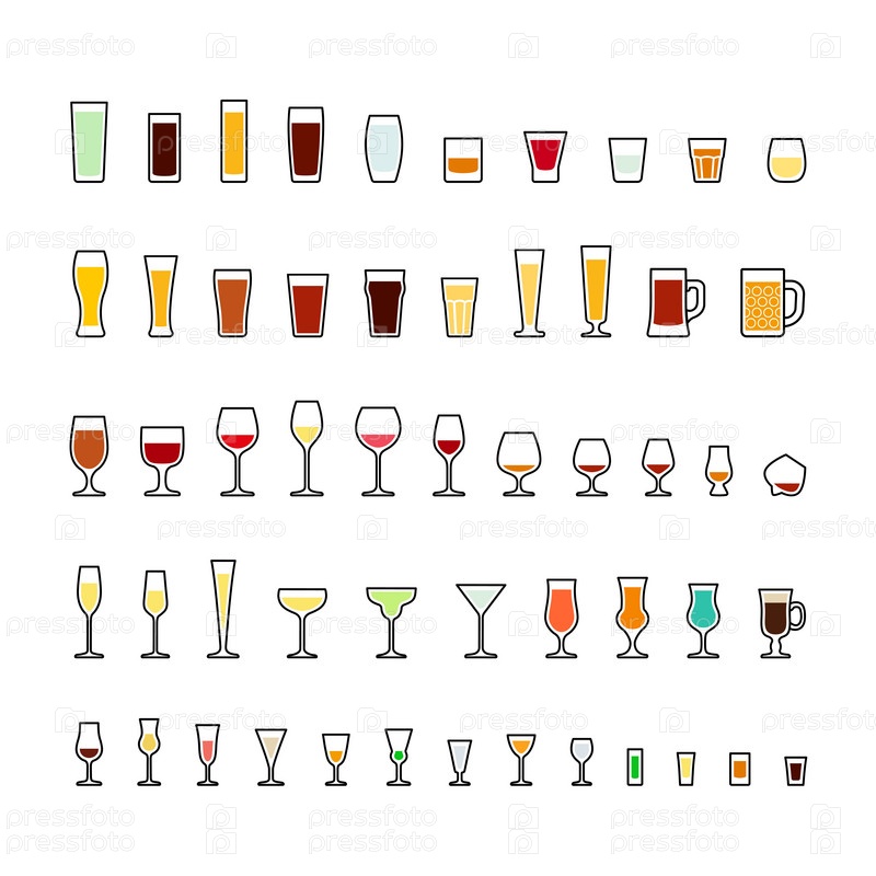 Набор красочных иконок для барной посуды