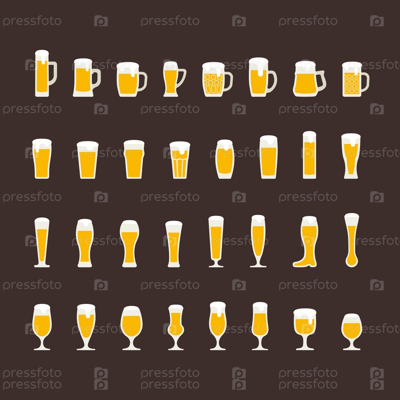 Пивные стаканы и кружки плоский набор иконок