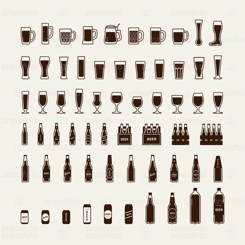 Набор иконок пивных бутылок и стаканов