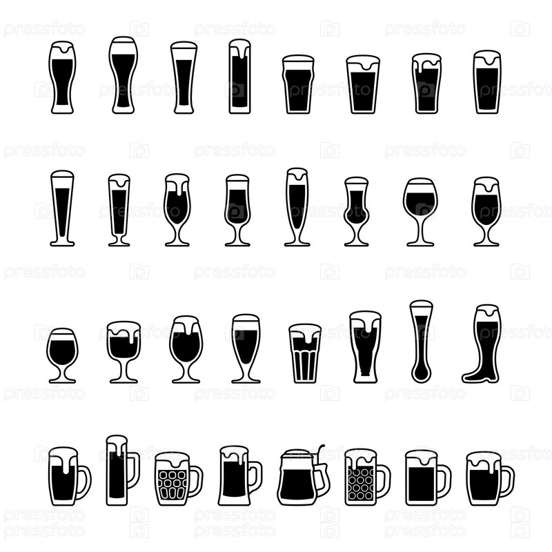 Пивные бокалы черно-белые иконки