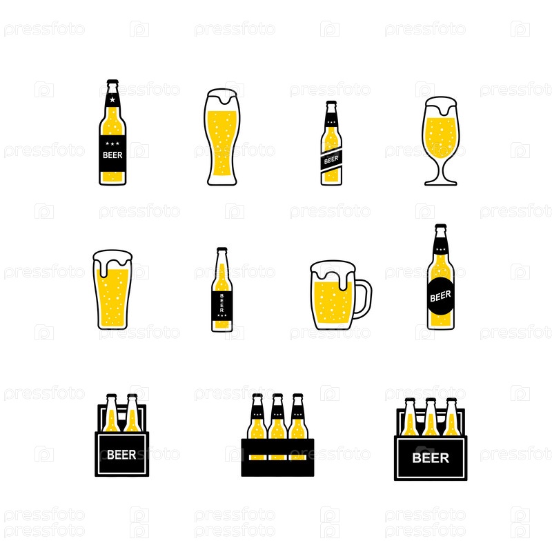 Набор значков цвета пивных бокалов и бутылок