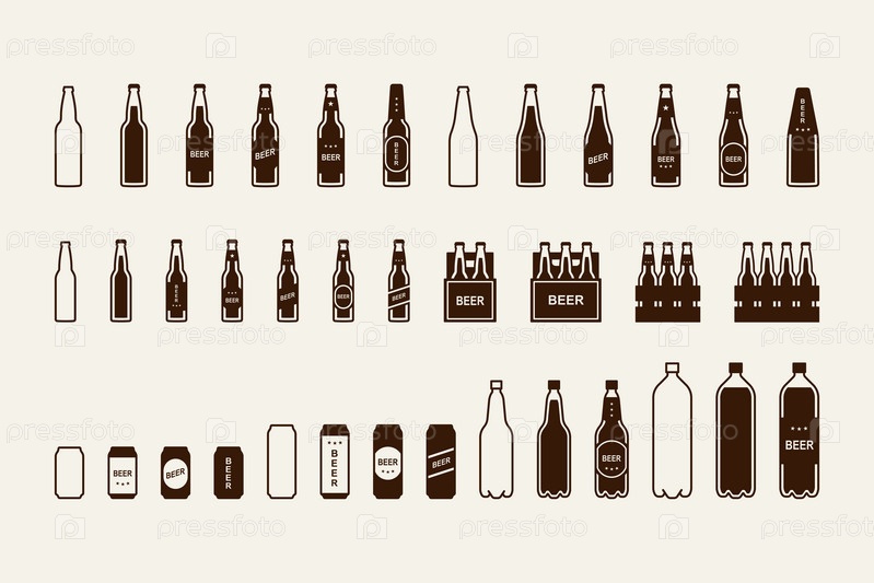 Набор значков пивной упаковки: бутылка, банка, коробка