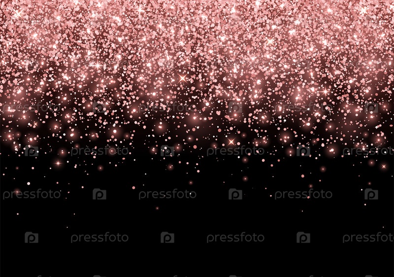 Праздничный розовый золотой сверкающий блеск разбросан по черному фону