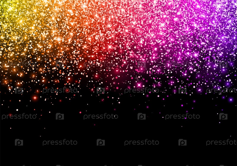 Многоцветный желтый розовый фиолетовый сверкающий рассеянный блеск на черном фоне