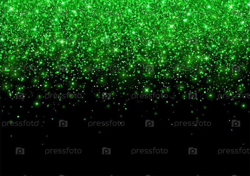 Праздничная фоновая россыпь зеленых блесток на черном фоне