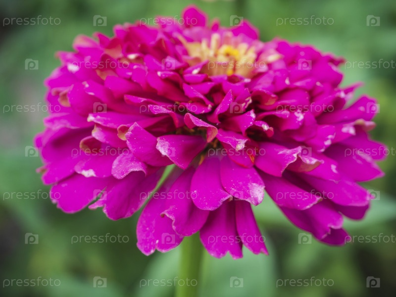 Крупный план розовых лепестков размытого цветка циннии на зеленом фоне