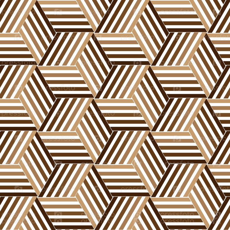 Бесшовный рисунок с цветными полосатыми сегментами куба. Кубический бесшовный рисунок в оттенках коричневого
