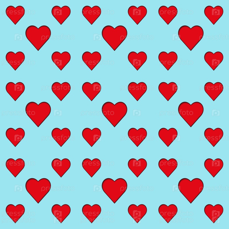 День Святого Валентина фон. Бесшовный фон с сердечками. Красные сердечки на синем фоне для дизайна, обложек, обоев