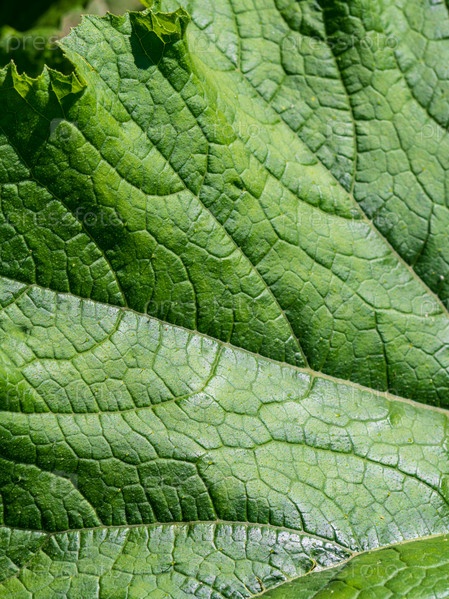 Абстрактный естественный фон - текстура поверхности зеленого листа крупным планом. Лист тыквы в естественных условиях при солнечном свете