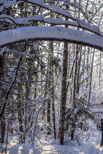 Зима. Лесные деревья, покрытые свежим пушистым снегом