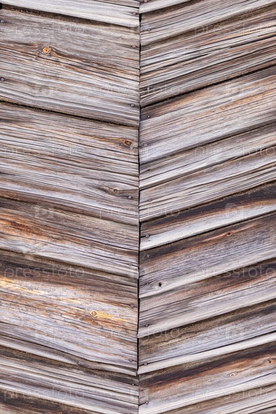 Старая деревянная стена с наклонными досками, детальная текстура дерева. Стена дома из деревянных досок