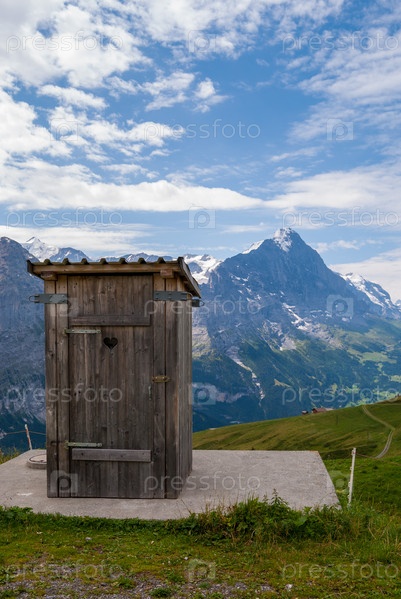 Небольшой деревянный флигель, стоящий высоко в швейцарских Альпах