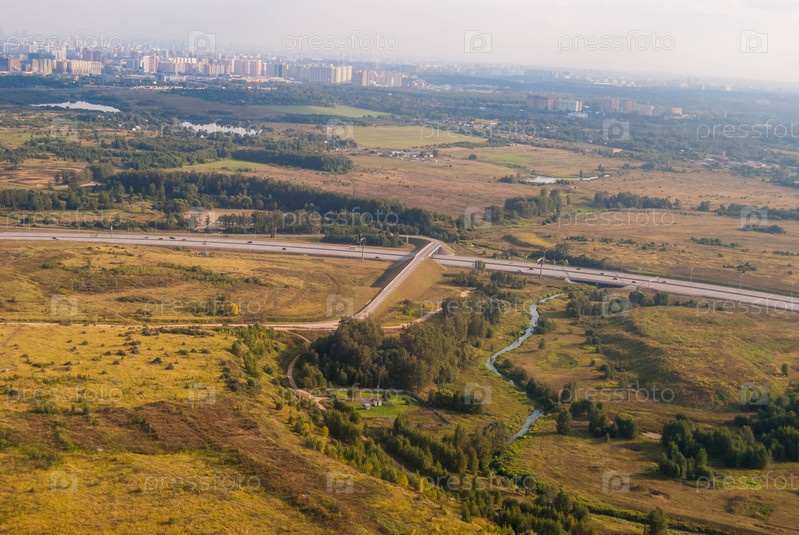 Вид сверху на строительство дороги. Москва, Россия
