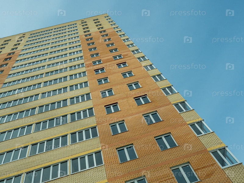 Новый современный многоквартирный дом. Вид снизу вверх