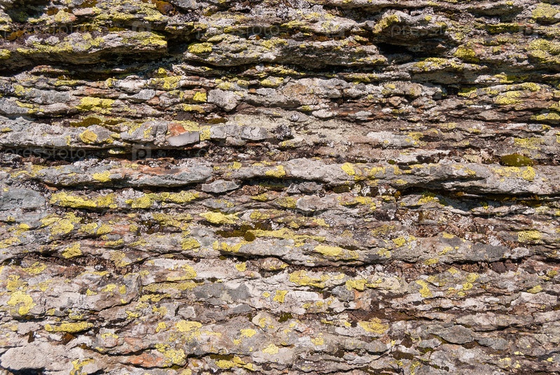 Крупный план серых скал, покрытых мхом, узор сколов, трещин. Гриндельвальд, Швейцария