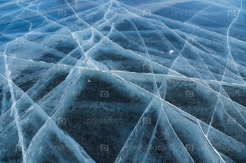 Лед с трещинами на водоеме